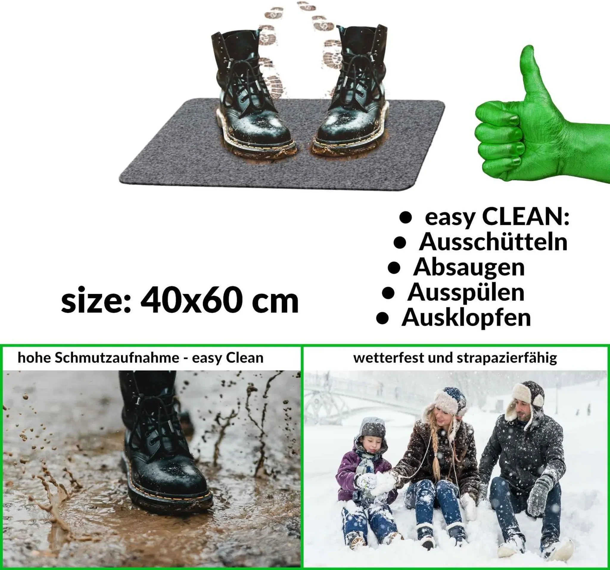 40 × 60 cm • Kräuselfasern • Robust & wasserabweisend • Grau