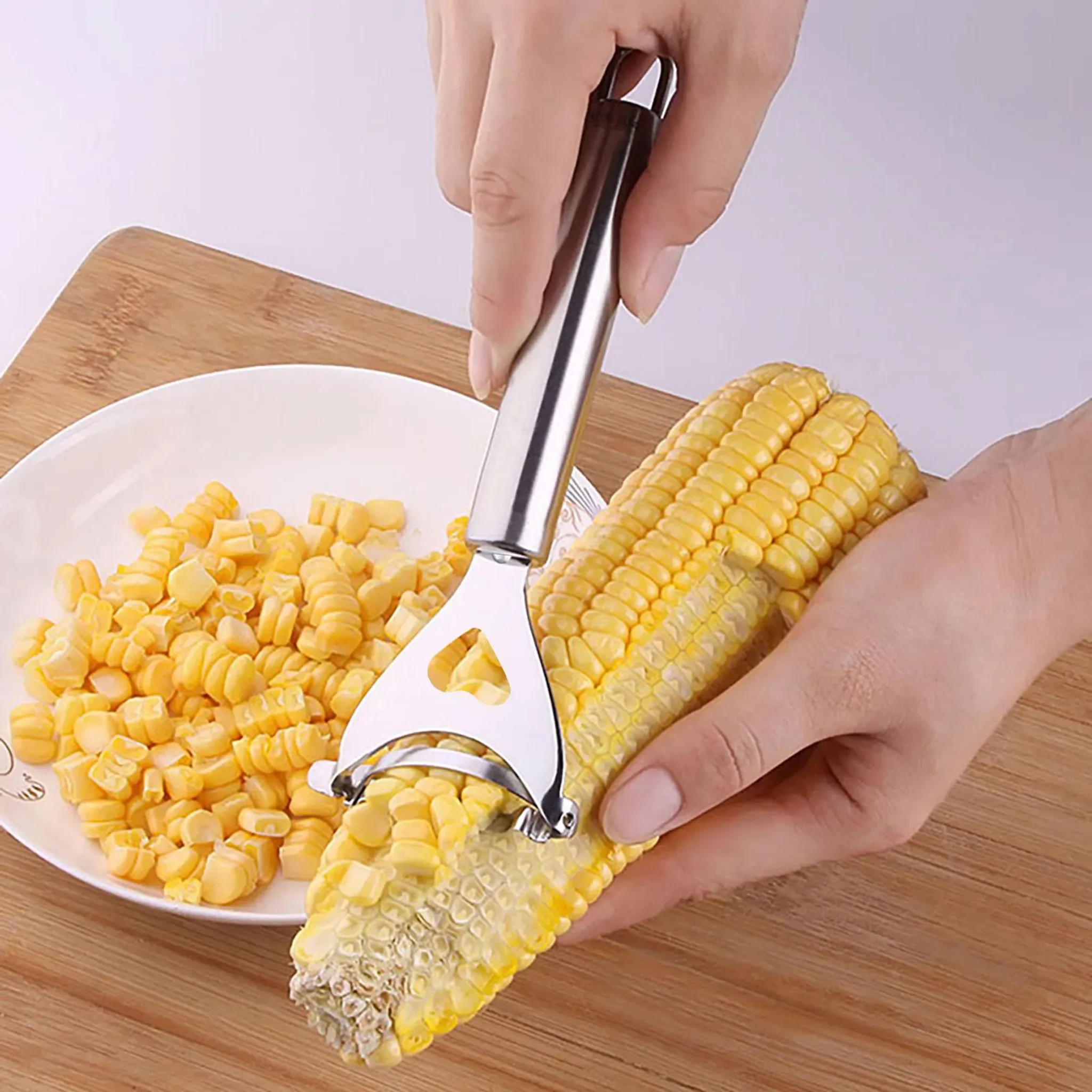 Highlights: Effiziente Maisvorbereitung, Edelstahlklinge, ergonomisch, langlebig, leicht zu reinigen, ideal für große Mengen & Mealprep.