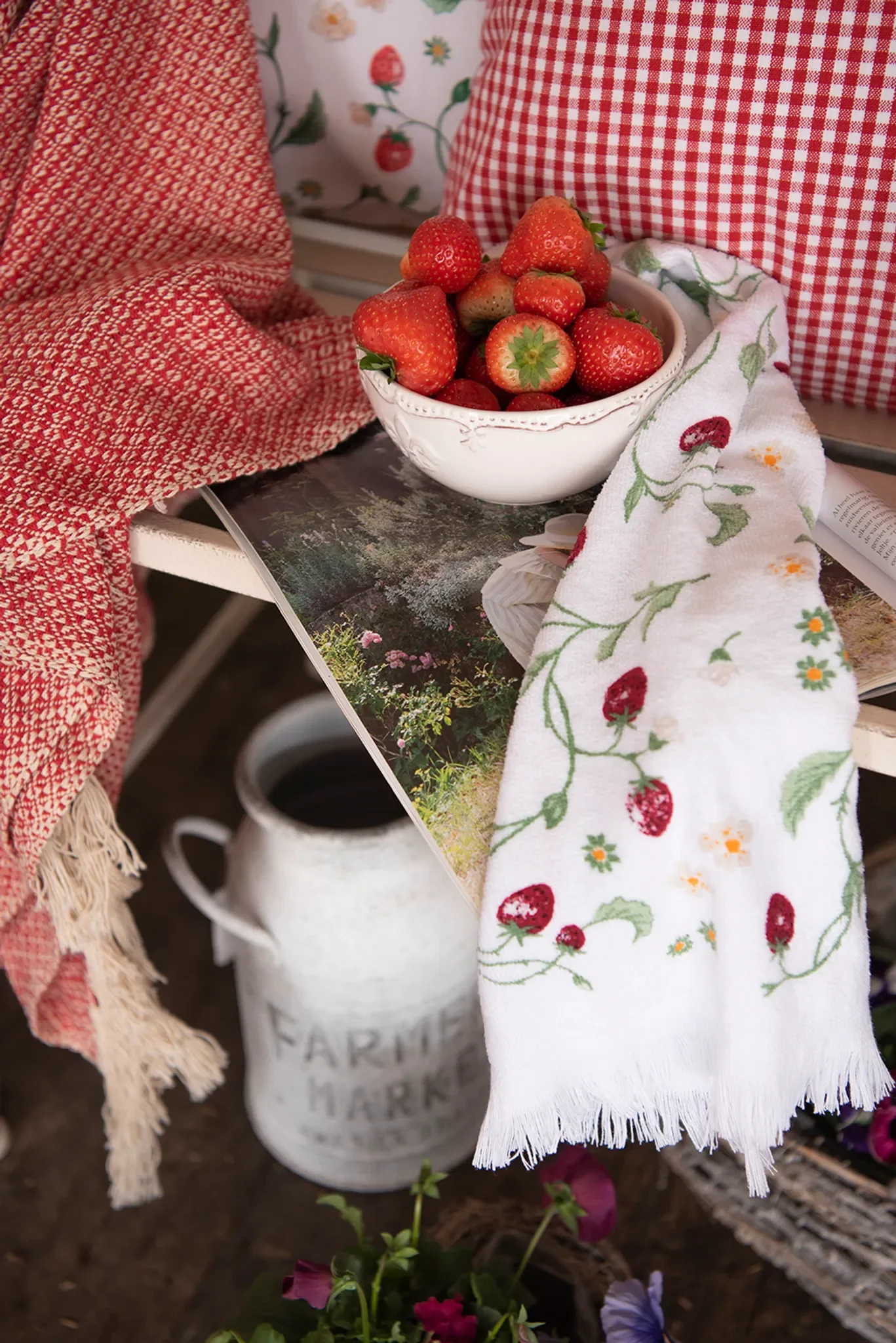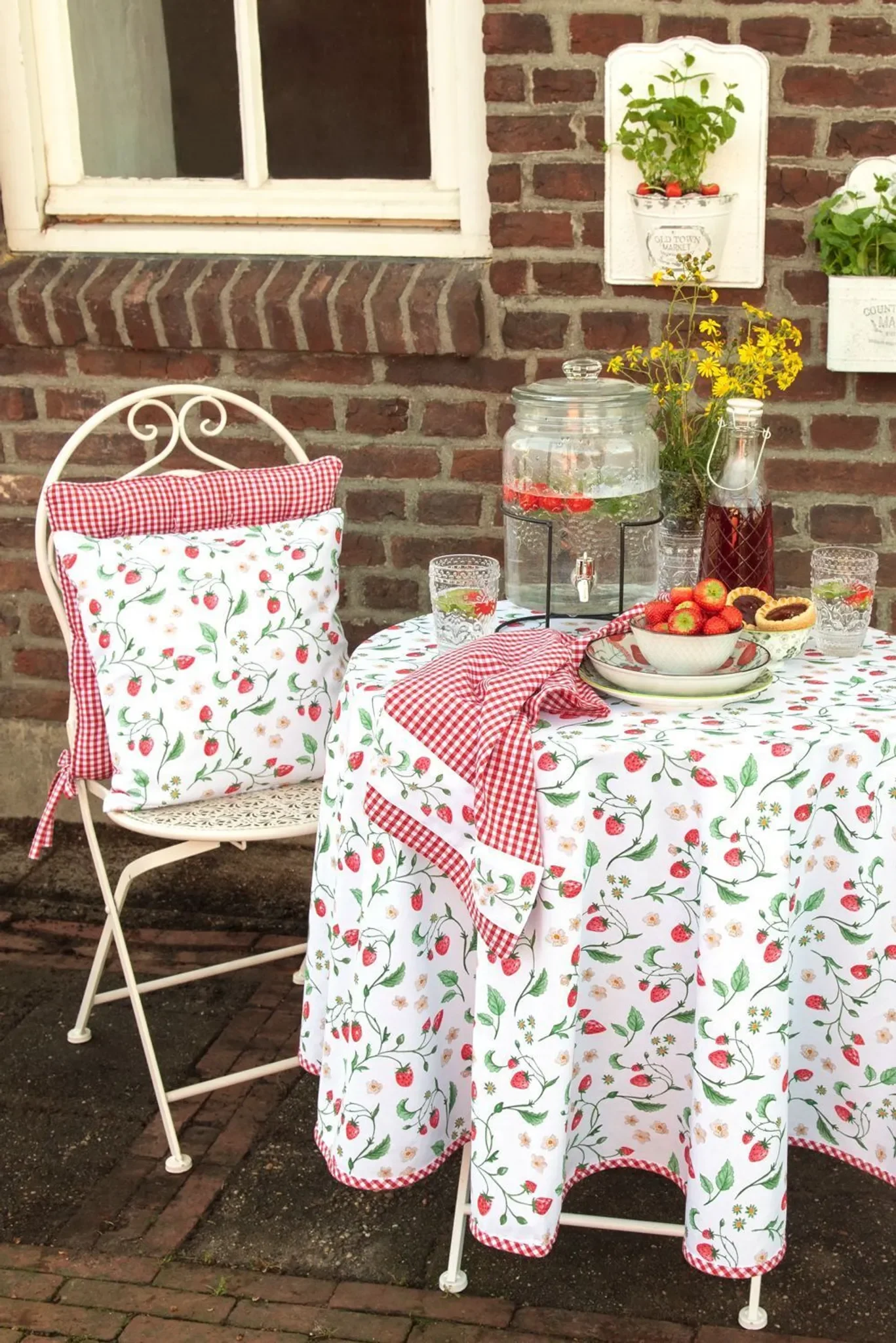 | Design | Erdbeer-Motiv, romantisch-ländlich |