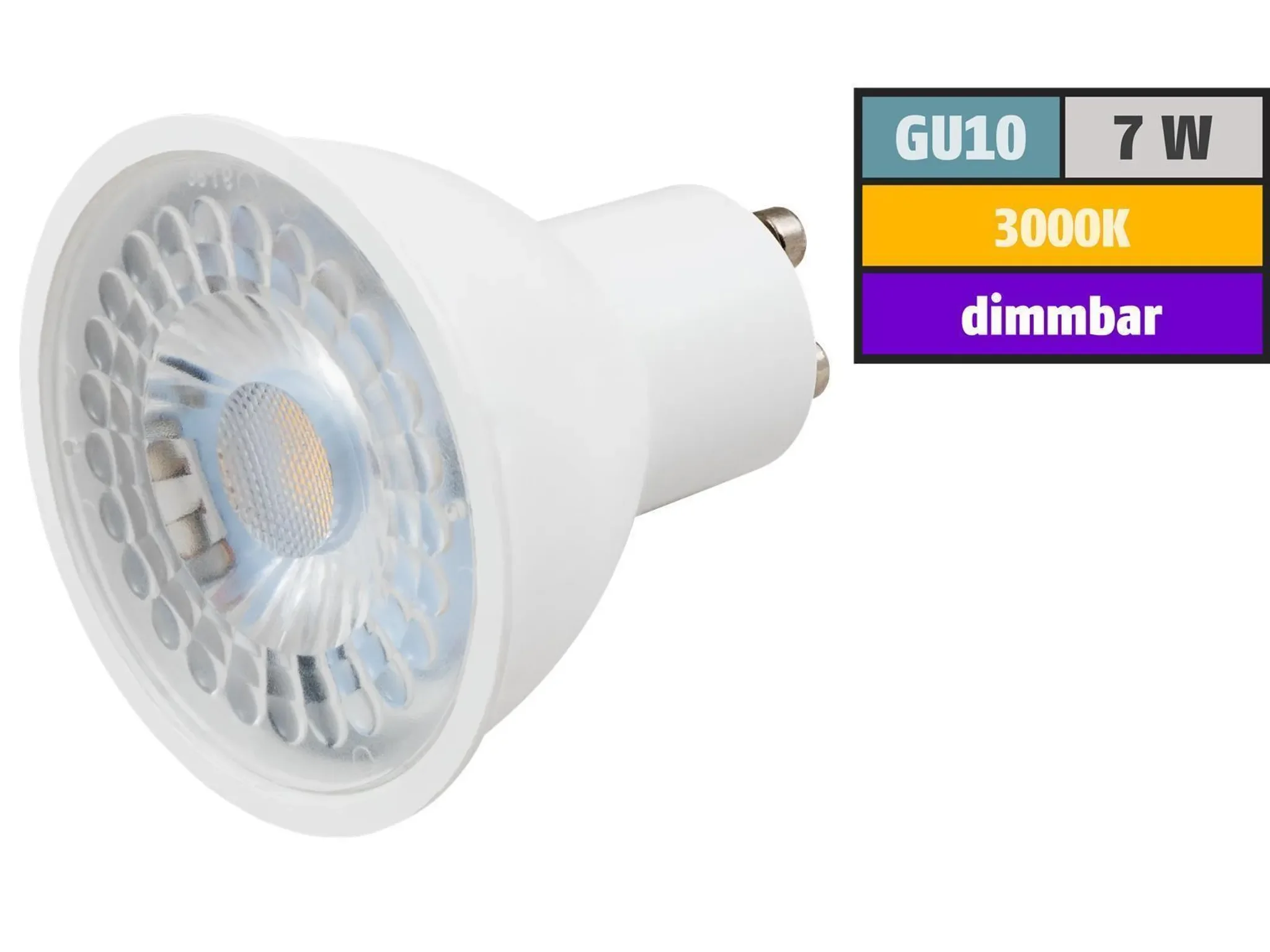 Highlights: energieeffizienter GU10-Ersatz, warmes Wohnlicht, dimmbar, langlebig, ideal für Spots & Downlights, direkter 230 V-Betrieb ohne Trafo.