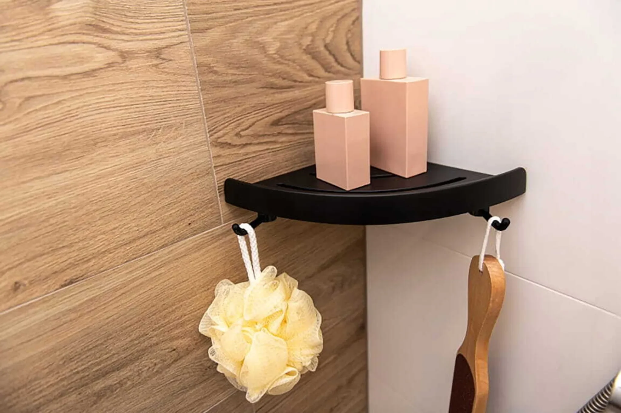 Highlights: Modernes Design, matte Oberfläche, platzsparende Eckmontage, sicherer Halt durch Rand, Entwässerung für schnelles Trocknen, robuste Badqualität.