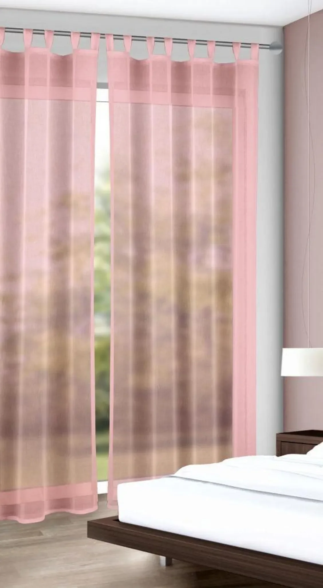 | Aufhängung | Verdeckte Schlaufen + Gardinenband |