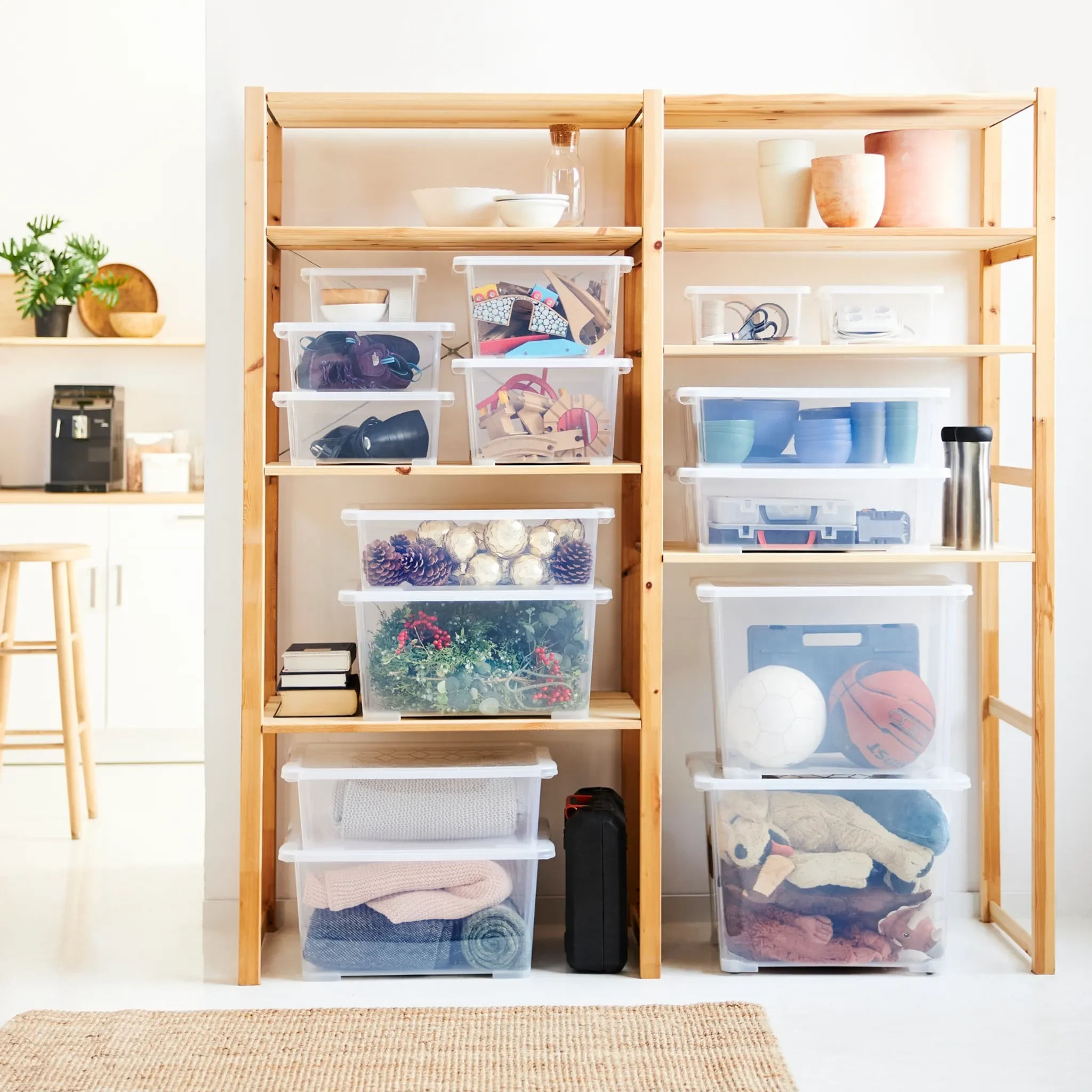 Der Inhalt bleibt vor Staub, Feuchtigkeit und Verschmutzungen geschützt. Dank der transparenten Wände lässt sich jederzeit erkennen, was sich im Inneren befindet. Die Box ist lebensmittelecht, BPA-frei und pflegeleicht – ideal für den täglichen Gebrauch. Mit Deckel stapelbar, ohne Deckel ineinander nestbar.