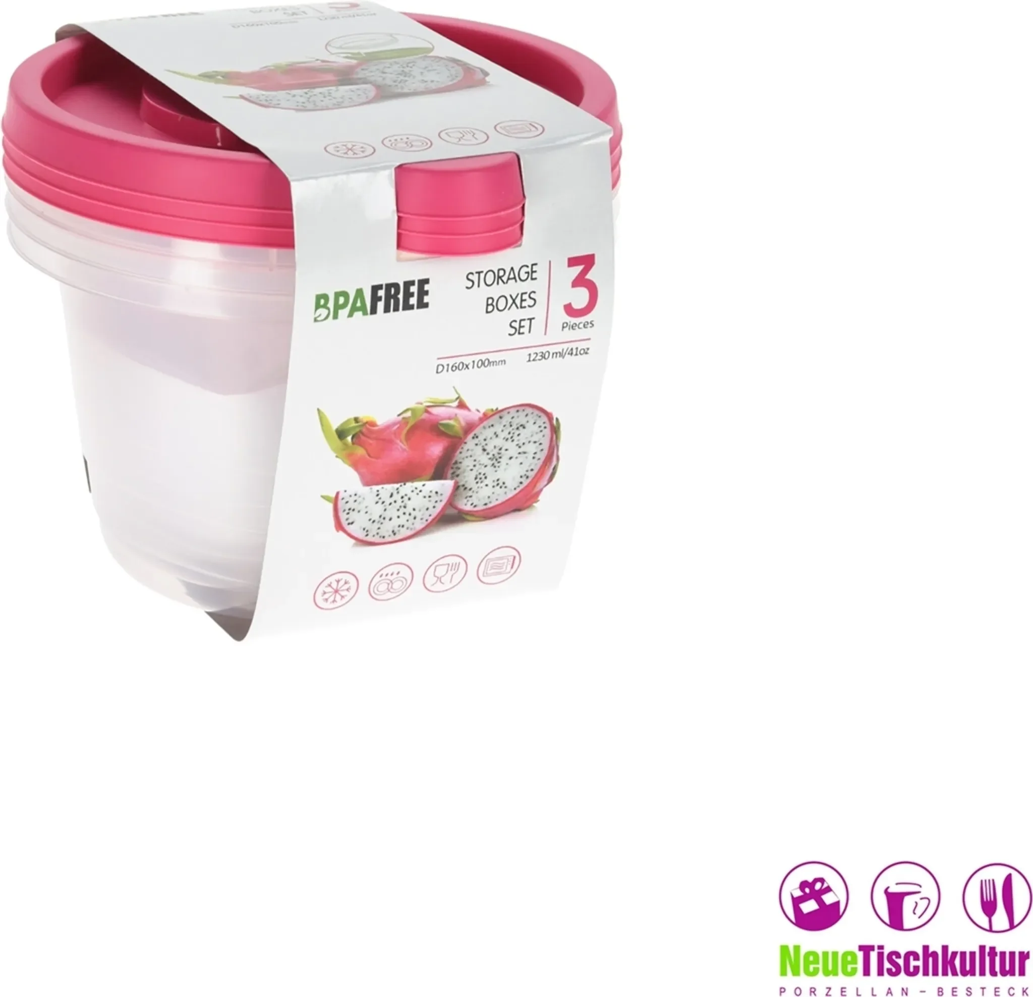 | Set-Inhalt | 3 × Vorratsdose mit Deckel |